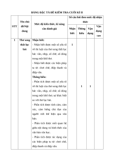 BẢNG ĐẶC TẢ ĐỀ KIỂM TRA CUỐI KÌ II