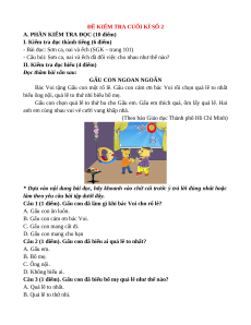Câu 2 (1 điểm). Gấu con đã biếu ai quả lê to nhất? A. Gấu em. B. Bố mẹ. C. Ông nội. D. Không biếu ai.