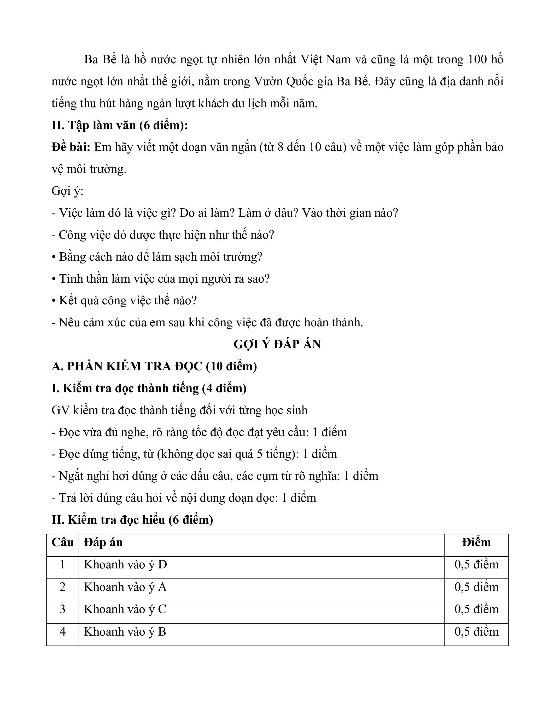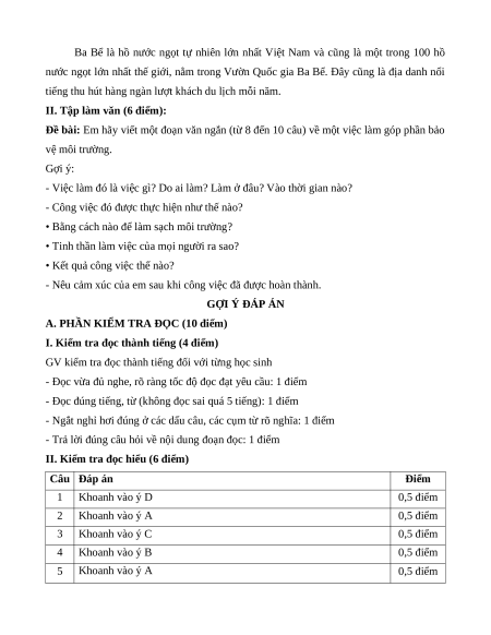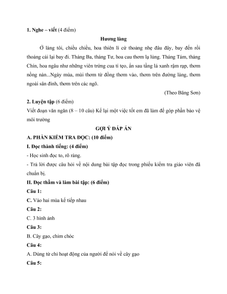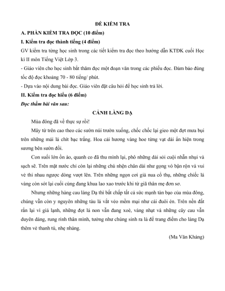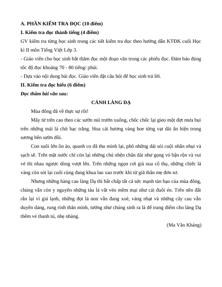 A. PHẦN KIỂM TRA ĐỌC (10 điểm)
