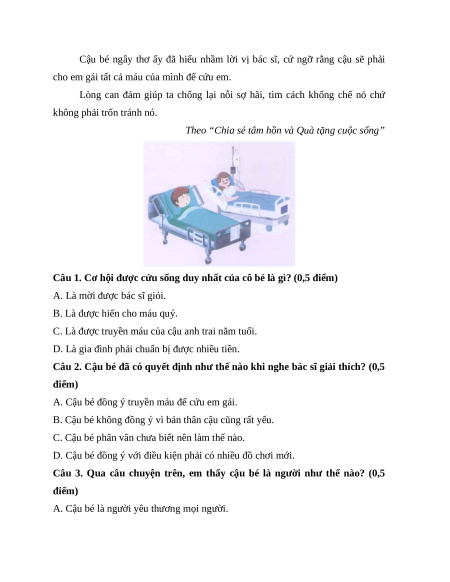 Câu 2. Cậu bé đã có quyết định như thế nào khi nghe bác sĩ giải thích? (0,5 điểm)