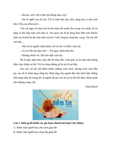 Câu 1. Điều gì đã khiến tác giả hoàn thành bài luận? (0,5 điểm)