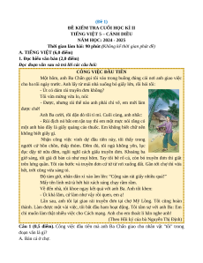 TIẾNG VIỆT 5 – CÁNH DIỀU NĂM HỌC: 2024 - 2025
