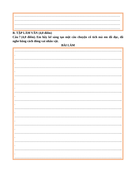 Câu 7 (4,0 điểm). Em hãy kể sáng tạo một câu chuyện cổ tích mà em đã đọc, đã