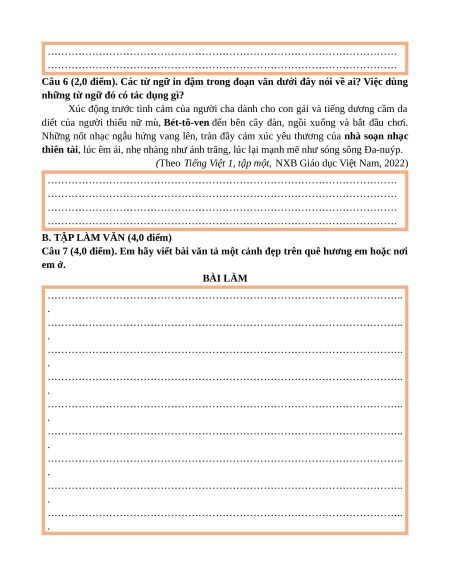 Câu 6 (2,0 điểm). Mỗi từ in đậm trong đoạn văn dưới đây thay thế cho từ ngữ nào?