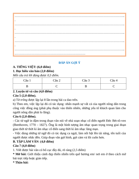 2. Luyện từ và câu (4,0 điểm) Câu 5 (2,0 điểm).