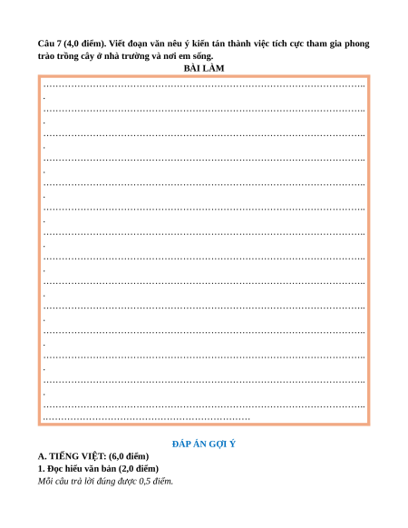 Câu 7 (4,0 điểm). Viết đoạn văn nêu ý kiến tán thành việc tích cực tham gia phong
