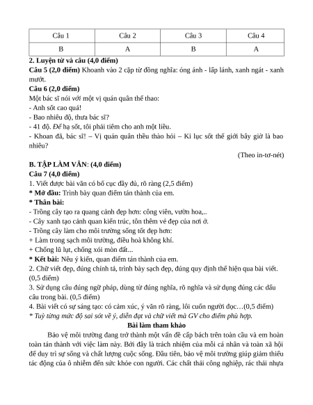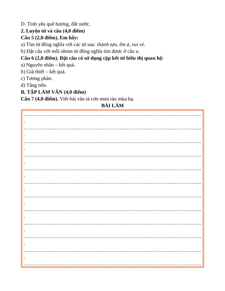 B. TẬP LÀM VĂN: (4,0 điểm) Câu 7 (4,0 điểm)