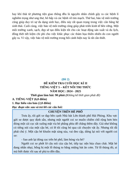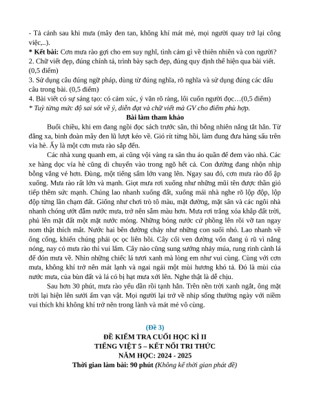 - Tailieugiaovien.com.vn giới thiệu bộ 10 đề Cuối kì 2 gồm đầy đủ ma trận và lời giải chi tiết môn Tiếng Việt lớp 5 Kết nối tri thức mới nhất năm 2025 nhằm giúp Giáo viên có thêm tài liệu tham khảo ra đề thi Tiếng Việt lớp 5.