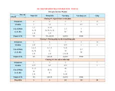 BẢN ĐẶC TẢ KĨ THUẬT ĐỀ KIỂM TRA CUỐI HỌC KÌ II Năng lực Số ý/câu Câu hỏi TN TN TN nhiều TN TN trả nhiều TN Nội Tư duy và trả lời Cấp độ Giải quyết Mô hình phương đúng lời phương đúng dung lập luận ngắn vấn đề hóa án lựa sai ngắn án lựa sai (số toán học (số chọn (số ý) (số câu) chọn ý) câu) (số câu) (số câu)
