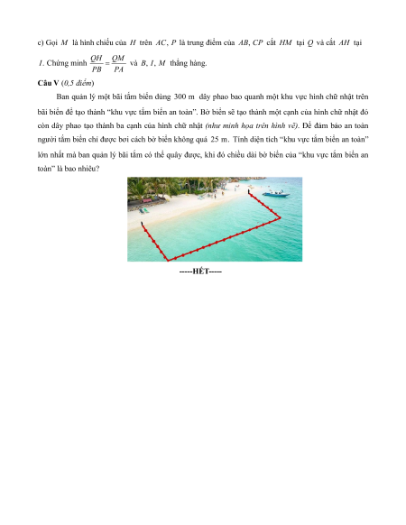 lớn nhất mà ban quản lý bãi tắm có thể quây được, khi đó chiều dài bờ biển của “khu vực tắm biển an toàn” là bao nhiêu? -----HÊT----- UBND QUÂN CÂU GIÂY HƯỚNG DẪN GIAI