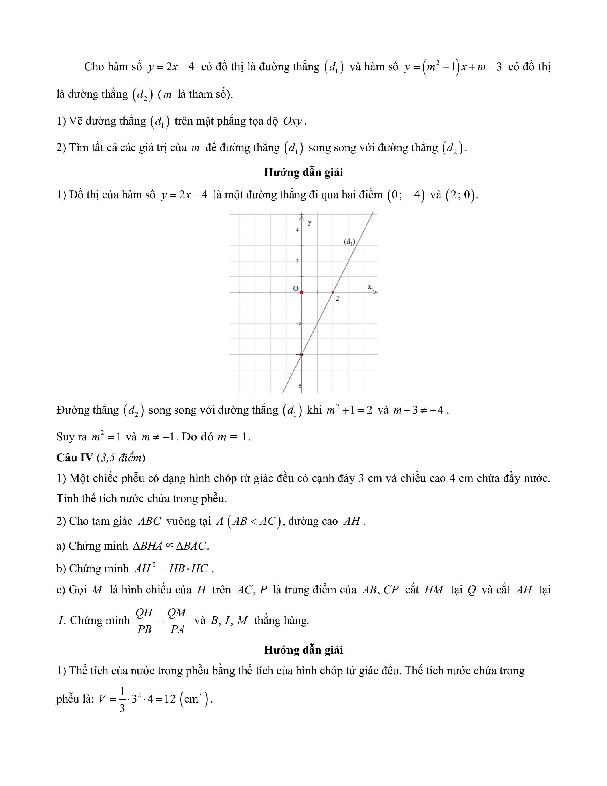 1) Một chiếc phễu có dạng hình chóp tứ giác đều có cạnh đáy 3 cm và chiều cao 4 cm chứa đầy nước.