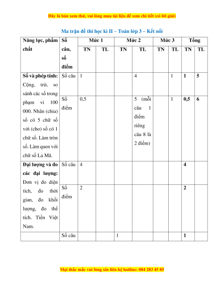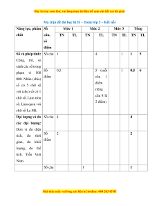 Ma trận đề thi học kì II – Toán lớp 3 – Kết nối