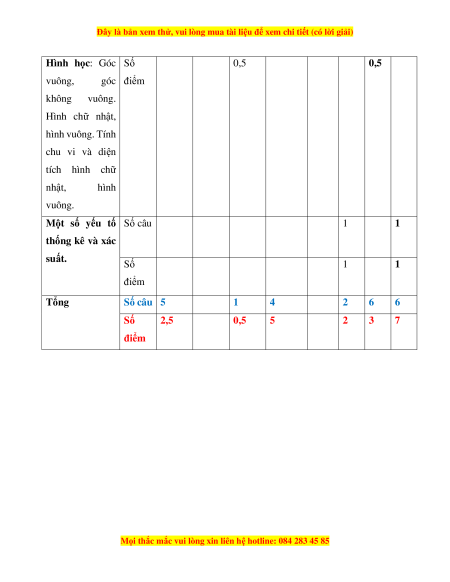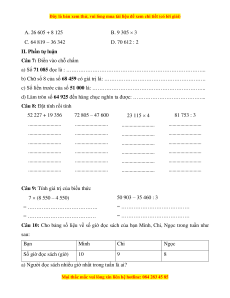 Số và phép tính: Số câu 1 4 1 1 5 Cộng, trừ, so sánh các số trong Số 0,5 5 (mỗi 1 0,5 6 phạm vi 100 điểm câu 1 000. Nhân (chia) điểm số có 5 chữ số riêng với (cho) số có 1 câu 8 là chữ số. Làm tròn 2 điểm) số. Làm quen với chữ số La Mã.