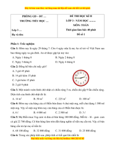 Đại lượng và đo Số câu 4 4 các đại lượng: Đơn vị đo diện tích, đo thờ Số 2 2 i điể gian, đo khố m i lượng, đo thể tích. Tiền Việt Nam. Số câu 1 1