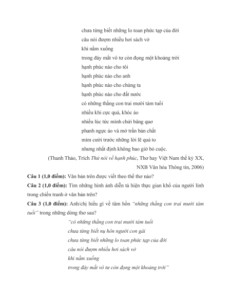 Đọc đoạn thơ sau và trả lời câu hỏi: