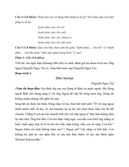 Bộ 10 đề thi giữa kì 1 Ngữ văn 12 Chân trời sáng tạo có đáp án