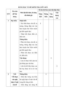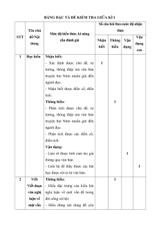 BANG ĐĂC TA ĐỀ KIỂM TRA GIỮA KÌ I