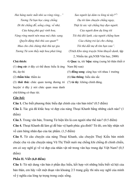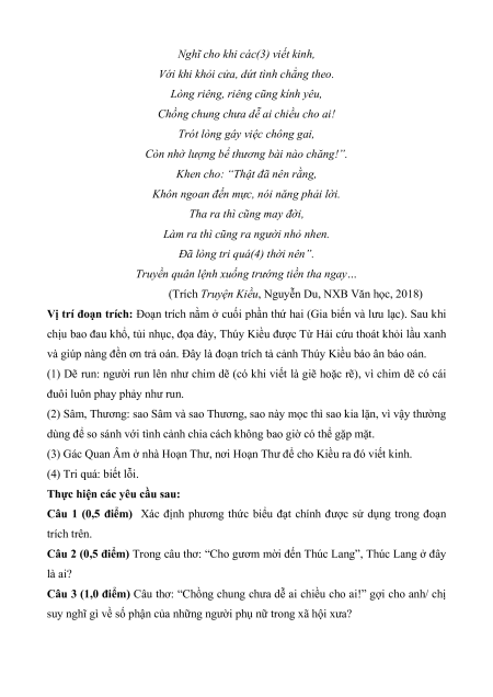Dưới đây là trích đoạn “Thoại Khanh thay chồng nuôi mẹ”, em hãy đọc kĩ