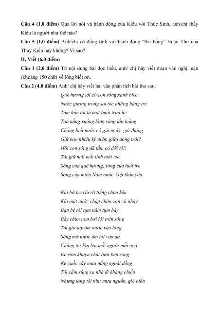 Phần I. Đọc - hiểu (4,0 điểm): Đọc văn bản sau và thực hiên yêu cầu