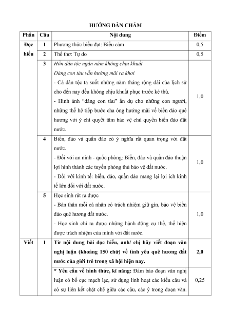 động như thế nào với biển đảo quê hương đất nước? II. Viết (6,0 điểm)