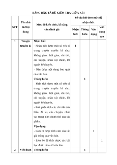 Mức độ kiến thức, kĩ năng STT đề/Nội Vận cần đánh giá Nhận Thông Vận dung dụng biết hiểu dụng cao 1 Truyện Nhận biết: truyền kì