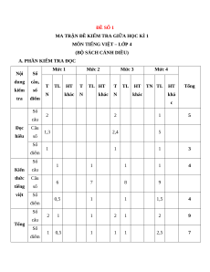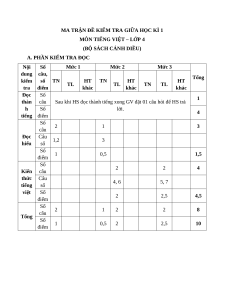 A. PHẦN KIỂM TRA ĐỌC Nội Số Mức 1 Mức 2 Mức 3 dung câu, Tổng kiểm số TN HT TN HT HT TL TL TN TL tra điểm khác khác khác Đọc Số 1 thàn câu