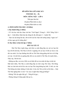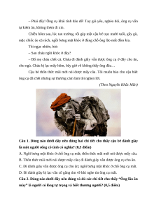 Sau khi HS đọc thành tiếng xong GV đặt 01 câu hỏi để HS trả h Số lời. 4 tiếng điểm Số 2 1 3 câu Đọc Câu 1,2 3 hiểu số Số 1 0,5 1,5 điểm Số 2 2 4 Kiến câu thức Câu 4, 6 5, 7 tiếng số việt Số 2 2,5 4,5 điểm Số 2 1 2 2 8 câu Tổng Số 1 0,5 2 2,5 10 điểm