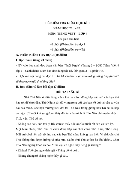 II. Đọc thầm và làm bài tập: (7 điểm) ĐÔI TAI XẤU XÍ