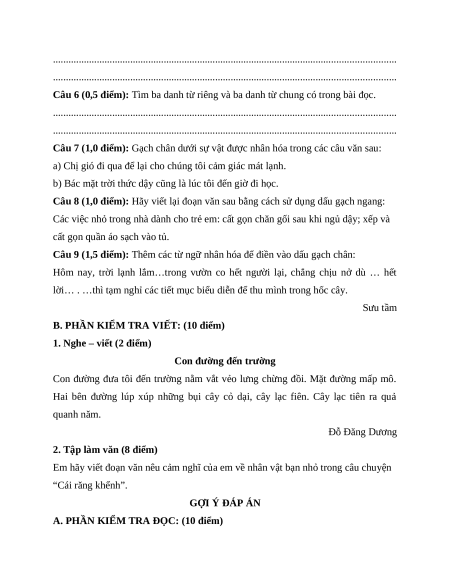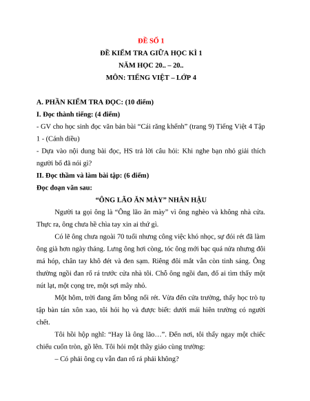 A. PHẦN KIỂM TRA ĐỌC: (10 điểm)