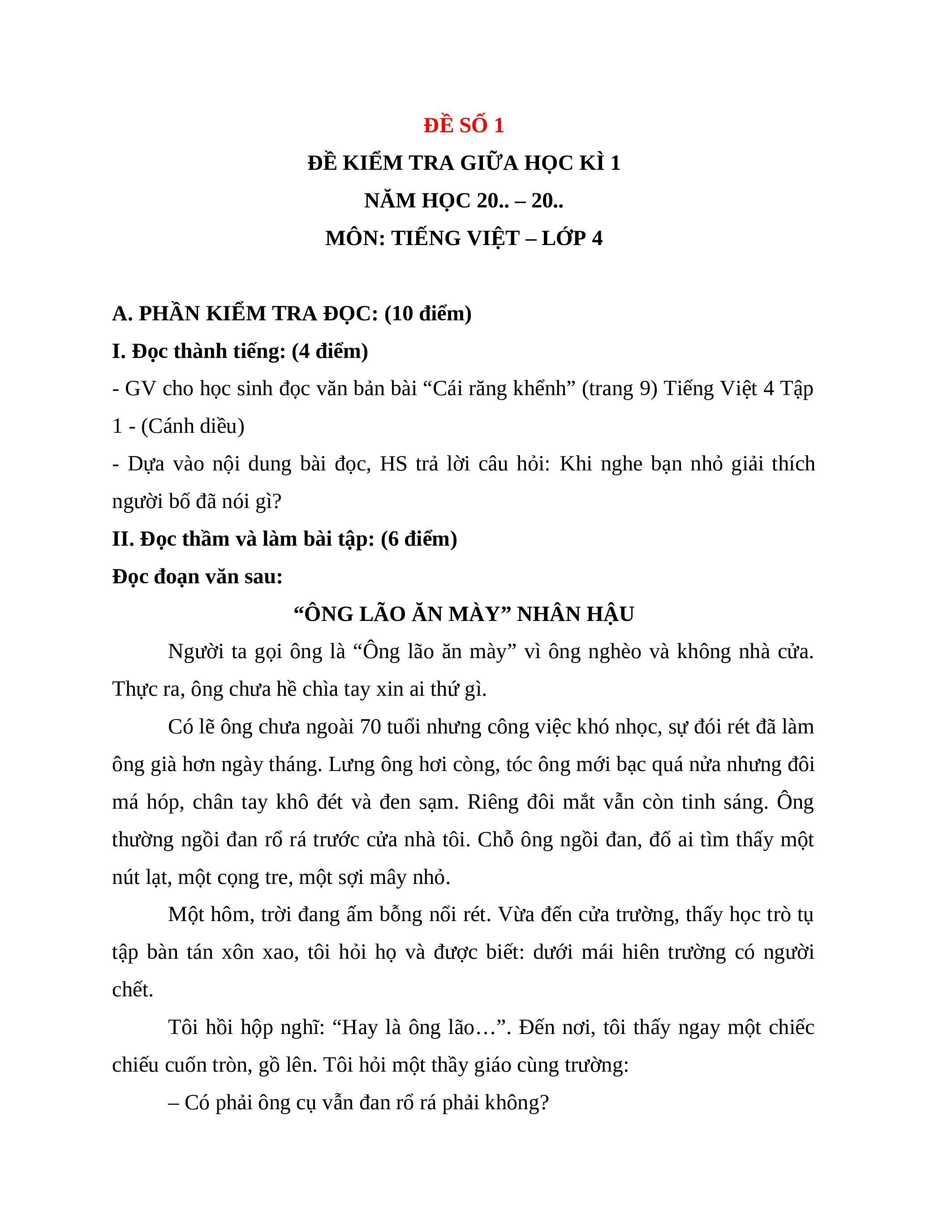 ĐỀ KIỂM TRA GIỮA HỌC KÌ 1