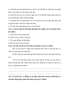 Câu 5 (1,0 điểm): Câu chuyện muốn nhắn nhủ chúng ta điều gì?