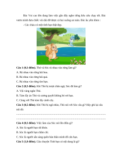 Câu 2 (0,5 điểm). Khi Thỏ bị trượt chân ngã, Sóc đã làm gì? A. Vội vàng ngăn Thỏ.