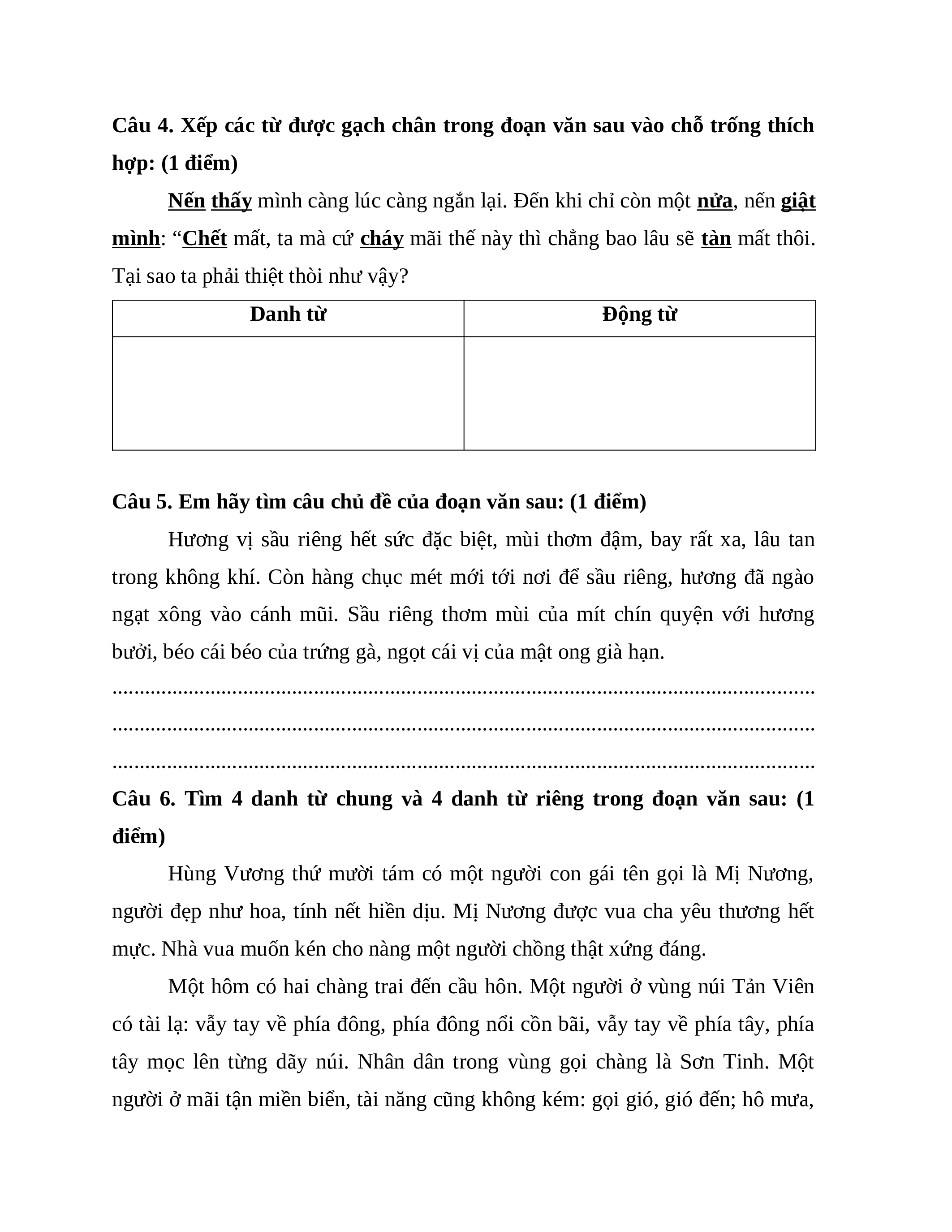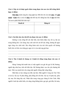Sau khi HS đọc thành tiếng xong GV đặt 01 câu hỏi để HS trả h Số lời. 4 tiếng điểm Số 2 1 3 câu Đọc Câu 1,2 3 hiểu số Số 1 0,5 1,5 điểm Số 2 2 4 Kiến câu thức Câu 4, 6 5, 7 tiếng số việt Số 2 2,5 4,5 điểm Số 2 1 2 2 8 câu Tổng Số 1 0,5 2 2,5 10 điểm