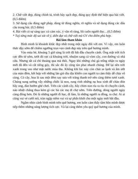 2. Chữ viết đẹp, đúng chính tả, trình bày sạch đẹp, đúng quy định thể hiện qua bài viết. (0,5 điểm)