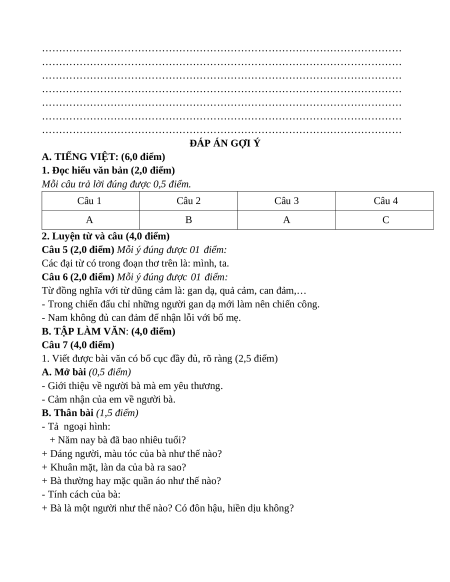 B. TẬP LÀM VĂN: (4,0 điểm) Câu 7 (4,0 điểm)