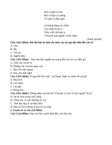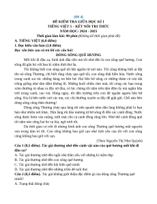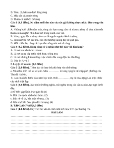 Câu 1 (0,5 điểm). Những con vật nào xuất hiện trong đoạn văn trên. A. Cò, bò, cá B. Cò, cá, chim C. Bò, cá, chuột D. Đáp án A, B và C