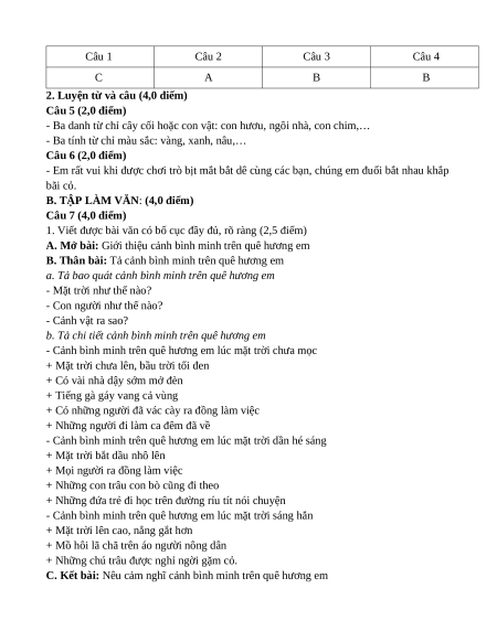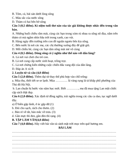 Câu 7 (4,0 điểm). Viết bài văn tả cảnh quê hương nơi em đang sống. BÀI LÀM