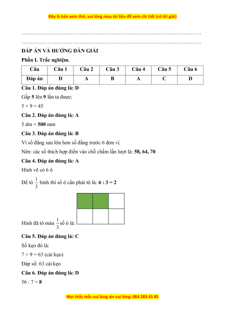 Câu 6. Đáp án đúng là: D 56 : 7 = 8