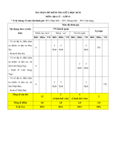 MA TRẬN ĐỀ KIỂM TRA GIỮA HỌC KÌ II