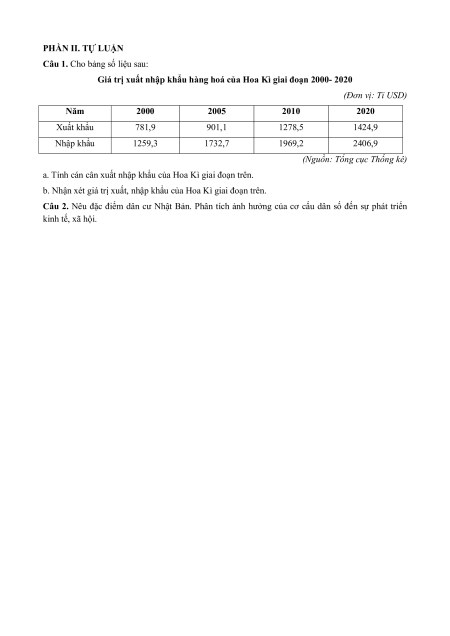 - Vị trí địa lí, điều kiện tự nhiên và dân cư, xã 2 2 2 4 1TL hội Nhật Bản. lệnh lệnh lệnh - Kinh tế Nhật Bản. Tổng số câu hỏi 2 4 12 2