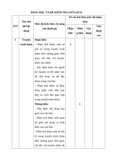 Mức độ kiến thức, kĩ năng STT đề/Nội Vận cần đánh giá Nhận Thôn Vận dung dụng biết g hiểu dụng cao 1 Truyện Nhận biết: