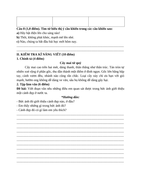 II. KIỂM TRA KĨ NĂNG VIẾT (10 điểm) 1. Chính tả (4 điểm) Cây mai tứ quý