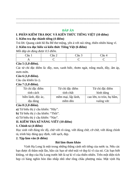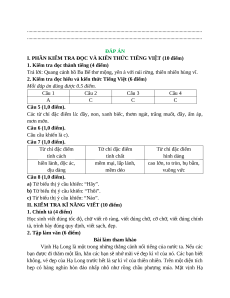 I. PHẦN KIỂM TRA ĐỌC VÀ KIẾN THỨC TIẾNG VIỆT (10 điểm)