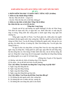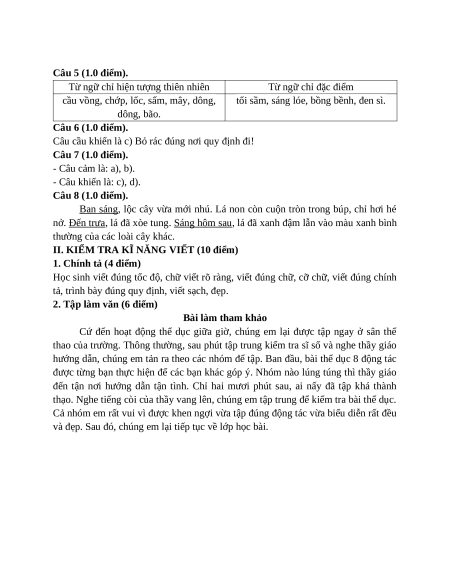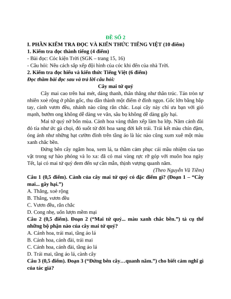 I. PHẦN KIỂM TRA ĐỌC VÀ KIẾN THỨC TIẾNG VIỆT (10 điểm)
