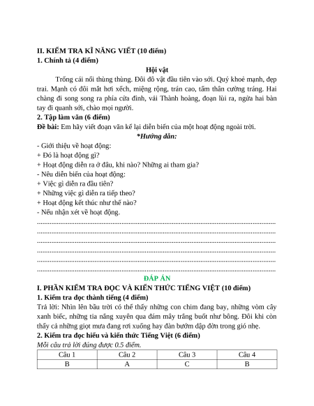 II. KIỂM TRA KĨ NĂNG VIẾT (10 điểm) 1. Chính tả (4 điểm) Hội vật
