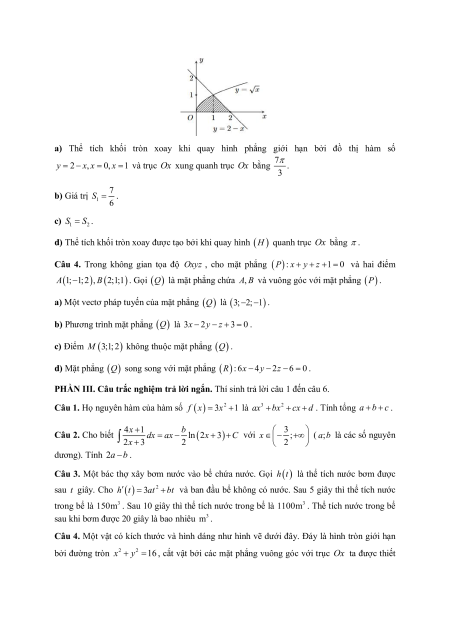 Chương IV. Nguyên hàm. Tích phân Số lệnh hỏi 8 7 5 2 22 Số điểm 2 2 1,5 1 6,5 5, 6 1, 2, 3, 4 1d, 2d, 3c, 3d Câu số/Phần 1c, 2c, 3a, 3b 3, 4 1a, 1b, 2a, 2b 2 (I, II, III) 1 III I, II II, III I, II, III Thành tố NL TD TD, QGVĐ GQVĐ MHH