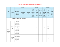 BẢN ĐẶC TẢ KĨ THUẬT ĐỀ KIỂM TRA GIỮA HỌC KÌ II Năng lực Số ý/câu Câu hỏi TN TN TN nhiều TN TN trả nhiều TN Nội Tư duy và trả lời Cấp độ Giải quyết Mô hình phương đúng lời phương đúng dung lập luận ngắn vấn đề hóa án lựa sai ngắn án lựa sai (số toán học (số chọn (số ý) (số câu) chọn ý) câu) (số câu) (số câu)