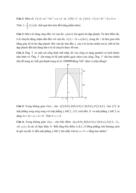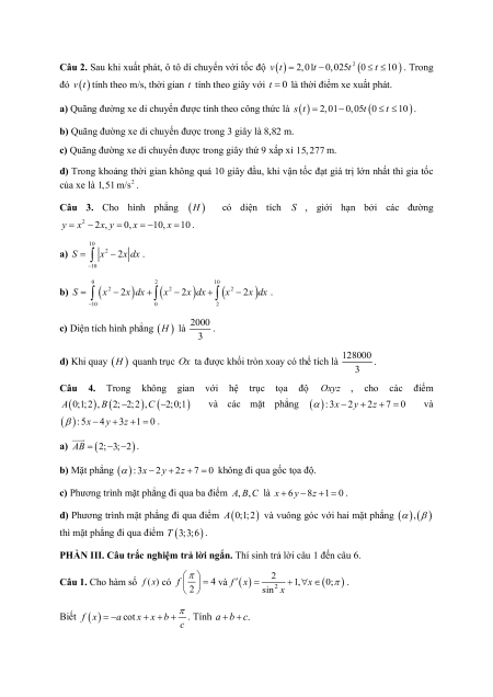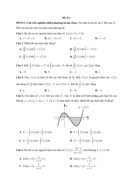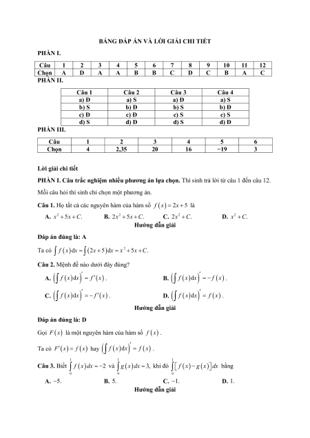 Chương IV. Nguyên hàm. Tích phân Số lệnh hỏi 8 7 5 2 22 Số điểm 2 2 1,5 1 6,5 1, 2, 3, 4, 5 6 1a, 1b, 1c, 2b, 2c, 2d Câu số/Phần 2a, 1d, 3c, 3d 3, 4 1 (I, II, III) 3a, 3b 2 III I, II, III I, II I, II, III Thành tố NL TD TD, QGVĐ GQVĐ MHH