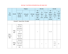 BẢN ĐẶC TẢ KĨ THUẬT ĐỀ KIỂM TRA GIỮA HỌC KÌ II Năng lực Số ý/câu Câu hỏi TN TN TN nhiều TN TN trả nhiều TN Nội Tư duy và trả lời Cấp độ Giải quyết Mô hình phương đúng lời phương đúng dung lập luận ngắn vấn đề hóa án lựa sai ngắn án lựa sai (số toán học (số chọn (số ý) (số câu) chọn ý) câu) (số câu) (số câu)