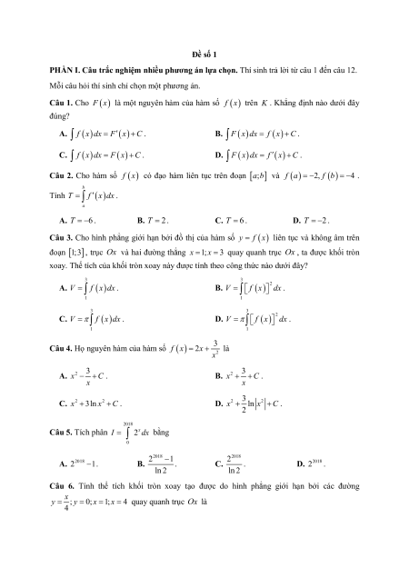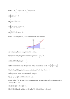 Chương IV. Nguyên hàm và tích phân Số lệnh hỏi 9 9 2 2 22 Số điểm 2,25 2,25 1 1 6,5 1, 2, 3 4, 5, 6 1a, 1b 1c, 1d Câu số/Phần 1, 2 3, 4 2a, 2b 2c, 2d (I, II, III) II, III III 3a, 3b 3c, 3d I, II I, II Thành tố NL TD TD, QGVĐ GQVĐ MHH